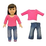 Great outfit for the ridiculously low price! It fits great on an American Girl doll and the jeans are very stylish they even have a little 'wear' in them just like the ones for people. The shirt doesn't have Velcro on the back but it's pretty stretchy so it is still easy to put on.