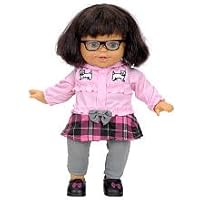 This little doll is so cute. My little girl who wears glasses loves her. When she unwrapped her package for Christmas she said "this doll wears glasses just like me. I never seen a doll that wears glasses. I love her". This was an excelent choice for my little girl's Christmas gift. The doll has a soft huggable body and is very cute.