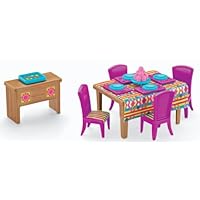 I was glad to have found this furniture set online since it seems some of the additional furniture sets are scarce at the retail stores. It does cost a little more than if it had been at the stores. If you are able to find any of the sets at the stores, they don't cost more than $15. But I guess if you can't find it anywhere, you have to pay for it. I am glad I got it though to add to the matching dollhouse for my 3 yr old. Can't have a house without a dining/kitchen table. Pretty sturdy, nice touch with the fabric table cloth, although it is a little "stiff" in that it really doesn't drape onto the table because it's so small, so the part that exceeds the table just sticks out in the air on the side as opposed to draping over the edges as in the picture. so that does make it take up some space or make it awkward trying to sit the dolls on the table, as it kind of pushes on them or the table settings. Takes a bit to straighten without knocking something over. Other than that, I'm still glad i got it.