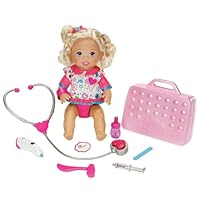 Customer review from the Amazon Vine Program The doll is well made and the hair especially is nice feeling and makes the doll a pretty one. This makes a difference since some dolls recently are just not that pretty.The various medical tools are fun for the child but the doll is too fast with her requests for her "Mommy" to help her feel better. By the time the child has found the item requested the doll has gone on to ask for something else. These requests are so fast and continuing that our four year old "tester" turned it off herself and then played with it without the sounds. She still loves playing with it but only sometimes turns on the sound. So the doll is very usable but the makers might keep this complaint in mind for the next version.