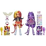 Customer review from the Amazon Vine Program These dolls are really pretty in the box. It was difficult to remove them with all the twist ties. They are light weight and seem somewhat fragile, not as durable as would think they might be. The hair is very tangled and when trying to brush it, strands come out. The clothes are pretty but it is not easy to close Sunset Shimmer's jacket there is a string and a tiny hole. So you can imagine trying to secure it. The accessories are very small so you know that they will get lost, and there is only 1 brush for both dolls, the picture shows 2 and the color I received is red not yellow or purple. Twilight has limited mobility in the arm area compared to Sunset Shimmer, so posing her is a little difficult. Conclusion these are cute, but won't last long especially for price. Considering how durable the regular ponies are I was expecting something different.