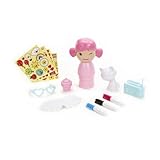I bought this toy for my 8 year old daughter's birthday. She was very disappointed. The markers show up very poorly on the doll. After you have "decorated" her, you have to use a pencil eraser to get the marker off. I assumed when it said it was erasable that it would wipe off easily...not so. Also, the marker doesn't completely wipe off so you can see old marker showing through your new design. I would not recommend purchasing this toy to anyone.I was looking forever for this doll. She's super cute and she came with lots of accessories. You get a little pack of markers for drawing her any way you want, a pack of stickers to put on her or her kitty. Her hair turns around so you can have one of two expressions too!