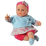 This doll llike all the other corolle dolls is just beautiful. We gave it to our granddaughter for Christmas and named her Emmy. It is her favorite toy and she is only 1 1/2 years old. Emmy goes everywhere with us and surprising still has her clothing on less the socks and headband.Sweet little doll with a cute (not alien) face. My 18 month old daughter is in love her new baby and hasn't hardly put her down all day. The soft vanilla scent is great, and the texture of the skin" is perfect.