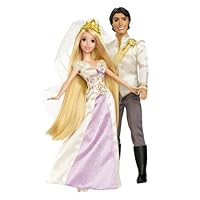 I bought this for my daughter's fourth birthday. However, when it came, I realized how boring it was. (1) Rapunzel's hair is blonde, not brown; (2) her hair isn't really that long; (3) arms and legs have limited movement; and (4) Flynn's clothing looking very cheaply made and he has a creepy look on his face. Rapunzel's dress is beautiful though. Instead I drove to the Disney Store nearby (they also take orders online). I bought Rapunzel in the purple dress and love her. She has joints at the hands, feet, elbow and knee. This gives her SO much more movement. For example, my daughter puts her on a horse (Paradise horse 10 inch) and she is able to "hold" onto the reigns. Also, the dress is so beautiful and her hair is very long and full. This is almost a problem because it gets knotted easily, but I fixed it by putting it a long braid. Also, her features are more similar to the movie than this doll. The price is very reasonable, and I got mine for $10.00. Because there is just so much more that you can do with the Disney brand dolls, that is where I will be buying all my Disney characters from now on. They also have brown hair Rapunzel in the wedding dress that is between $10 $14.50.Honest reviews on Disney Princess Rapunzel and Flynn Wedding Doll Gift Set
