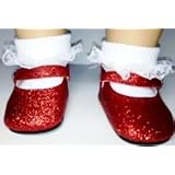 I got these as a replacement for shoes that came with a Madame Alexander Dorothy doll (18", just like an American Girl doll). The ones the doll came with were cute and red, but not sparkly! These fit perfectly. We have several actual American Girl dolls and the feet on this Dorothy doll are the same, so these would fit the others, too. I would check, but these shoes are on the Dorothy Doll, in the box, which is wrapped up for Christmas. Shhh!!!