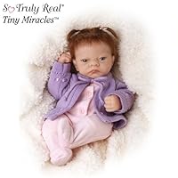 She is a cute baby replica. I like the small babies and they dont seem that easy to find. There was a small bit of glue in her hair on the back. She is not jointed. She has a one piece pink sleeper with a dark lavender light jacket with pink ribbon trim.